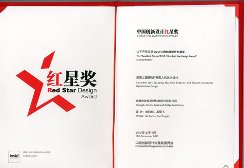 近日,公司獲悉由新筑股份與西南交大聯合開發的工程機械產品外觀及人機優化設計項目取得圓滿成果,其中攤鋪機、混凝土濕噴機、稀漿封層車產品外觀及人機優化設計項目分別榮獲2012年、2013年中國設計紅星獎。該項目成果已成果應用于公司新產品的批量生產中,參加了2012bauma China國際工程機械展、2013西部國際博覽會并獲得用戶及參觀觀眾的一致好評。