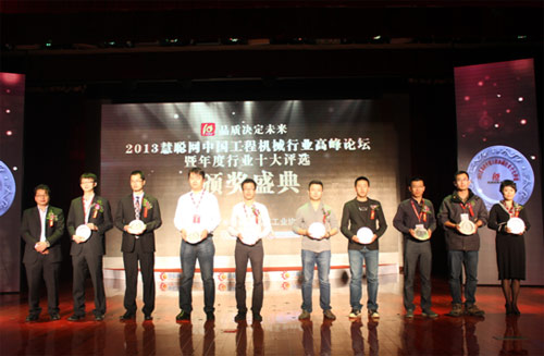 2013年中國工程機械行業十大評選頒獎盛典于10月14日舉行。頒獎現場貴賓云集,行業領導、業內資深專家、各大媒體等匯聚一堂共同見證獎項揭曉。