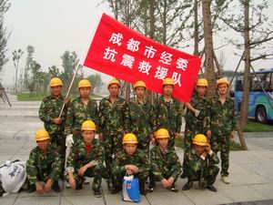 5月17日,公司組織了12名專業工程技術人員奔赴災區都江堰和彭州,參加一線的抗震救災工作,出發前,在公司舉行了誓師大會,在會上提出了準軍事化的紀律和作業要求。抗震救災人員中,絕大部分是退伍軍人,他們發揚不怕苦、不怕累艱苦奮斗的精神,在生活條件極不便利的情況下,密切配合當地政府開展災后危房拆除和救援物資轉運工作,受到了當地政府和群眾的高度贊揚,圓滿的完成了任務。四川省經貿委專門向我公司參加抗震救災的志愿者每人發來了感謝信,以示表揚和鼓勵。