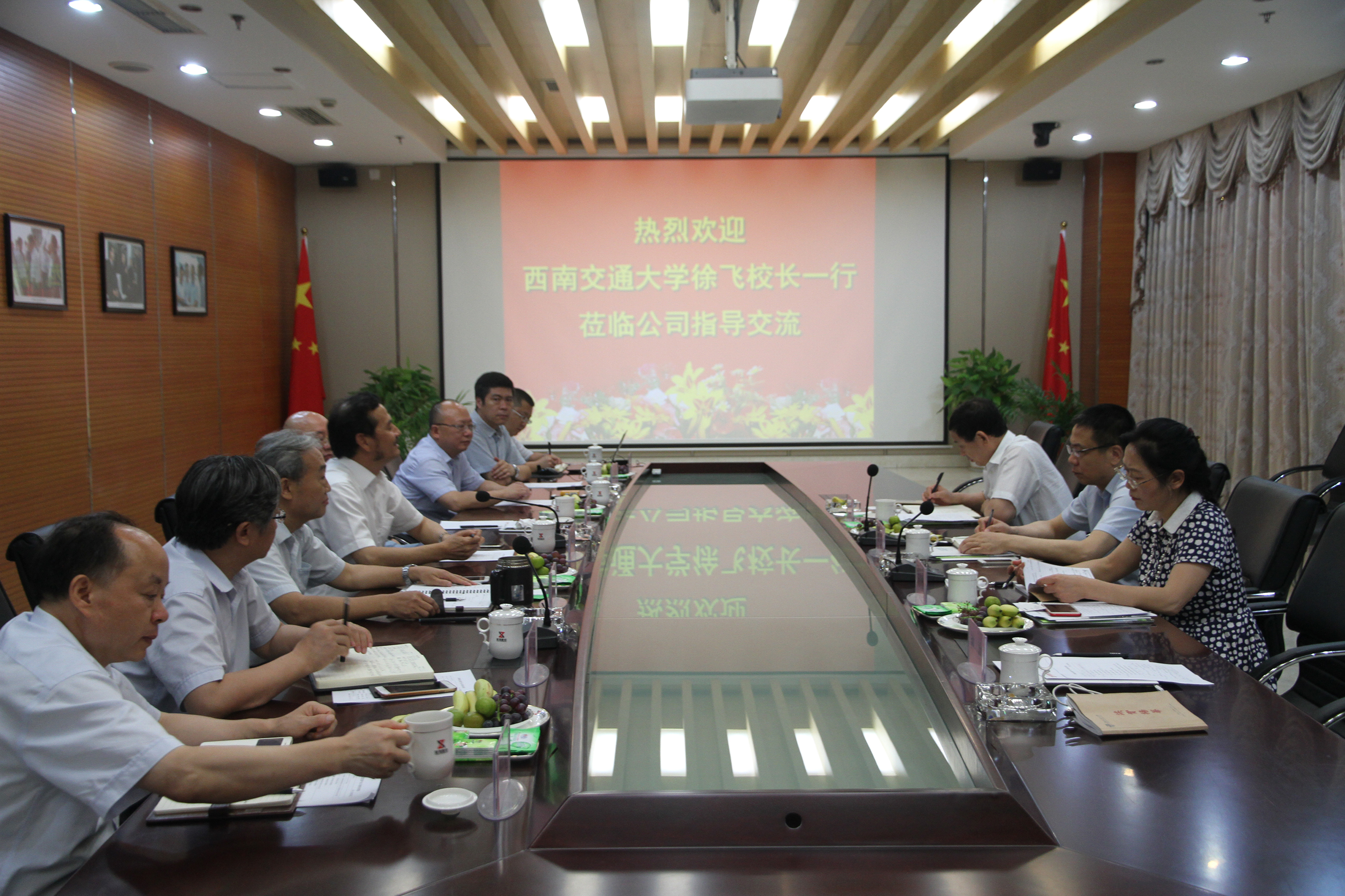 ? ? ? ? 2016年7月25日下午,西南交大校長徐飛、副校長朱健梅、張文桂、校長辦公室主任鐘沖一行到公司進行合作交流,公司董事長黃志明、總裁馮克敏、設計研究總院院長胡基士、副總裁王斌、衡福明、董事長助理劉紅艷、長客新筑總經理王恩輝等公司領導一行參與了此次接待。