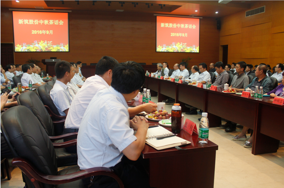 ? ? ? ?金風(fēng)送爽,中秋月圓。中秋佳節(jié)來臨之際,9月14日下午,新筑股份2016中秋茶話會(huì)在223會(huì)議室順利召開,公司高層領(lǐng)導(dǎo)與各單位骨干人員共計(jì)100余人歡聚一堂,共慶佳節(jié),共敘友情,共謀發(fā)展。公司董事長(zhǎng)黃志明、總裁馮克敏和相關(guān)公司領(lǐng)導(dǎo)出席了此次茶話會(huì)議,會(huì)議由總裁馮克敏主持。