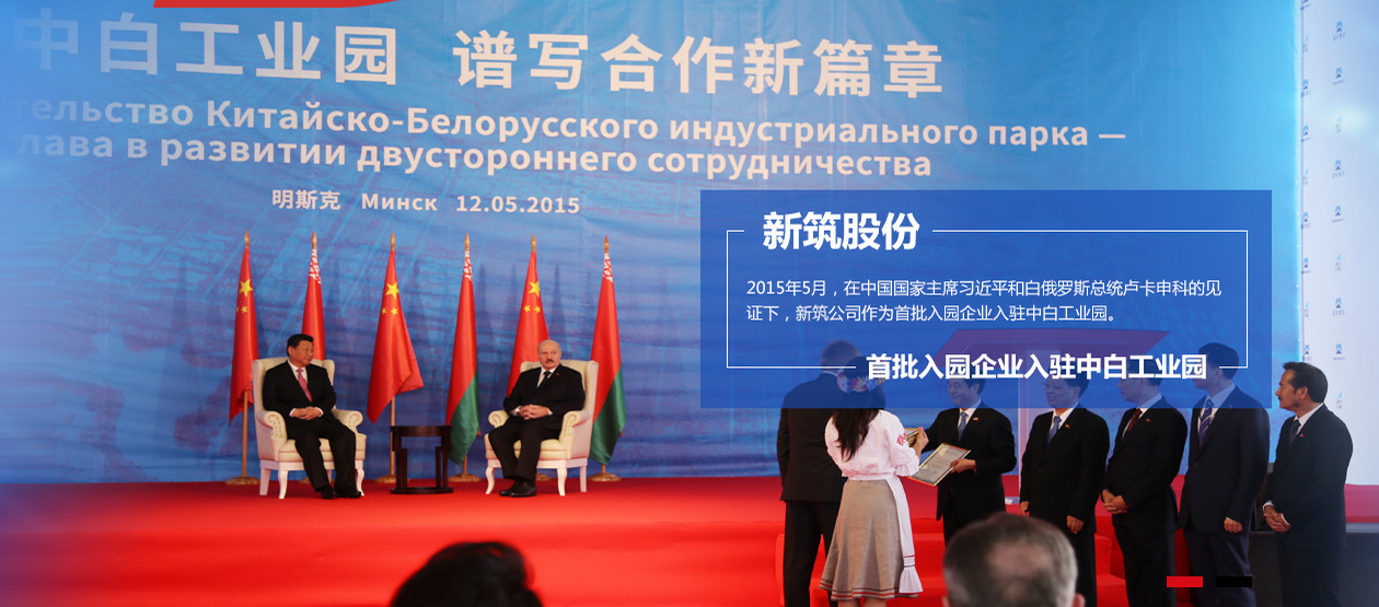 ? ? ? ?2015年5月,中國國家主席習近平在白俄羅斯首都明斯克同其總統盧卡申科舉行會談,確定了共建中白工業園作為戰略合作的重點項目,將園區項目打造成絲綢之路經濟帶上的明珠和雙方互利合作的典范。在習主席和盧卡申科總統的見證下,新筑路橋公司作為首批入園企業正式入駐中白工業園。?