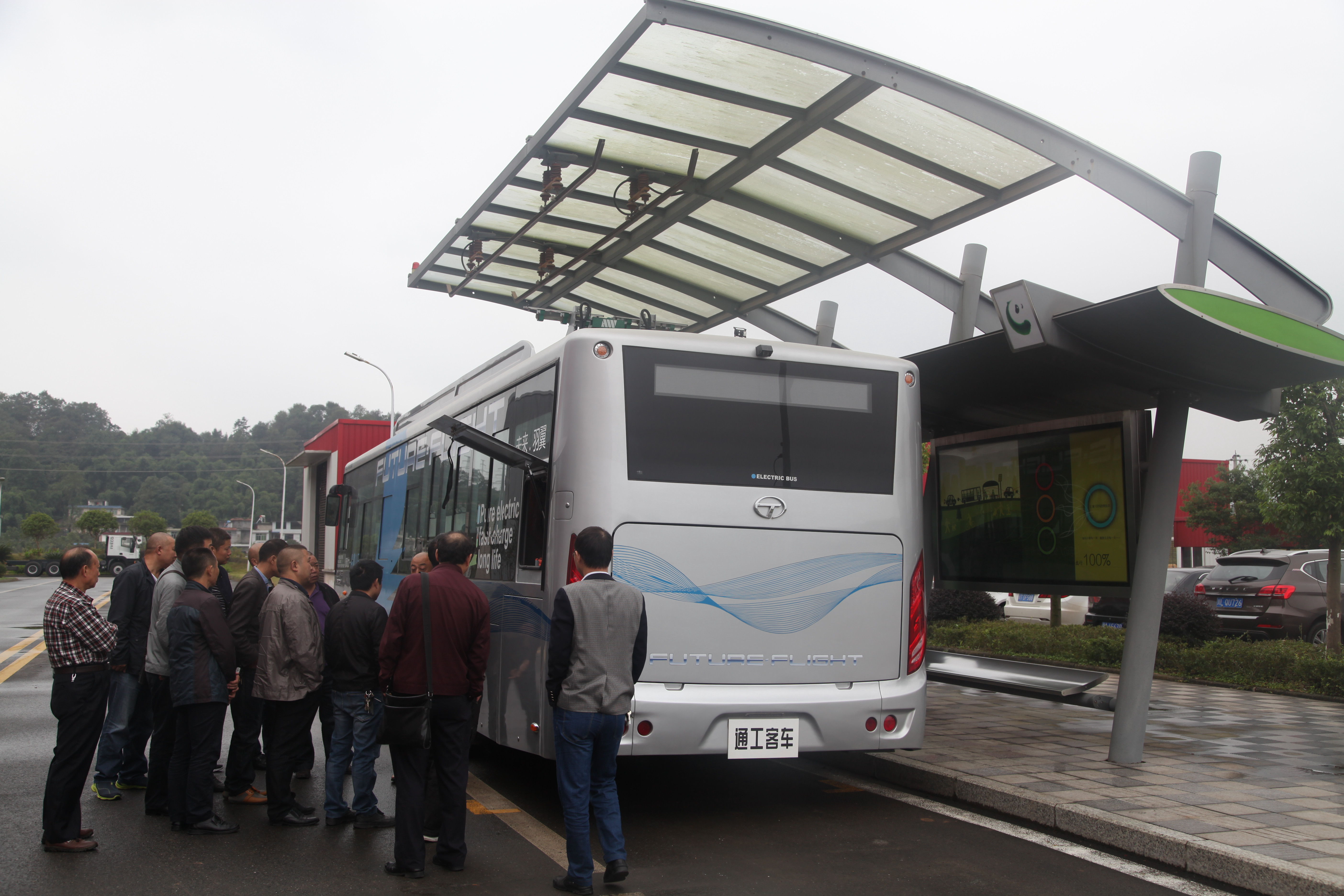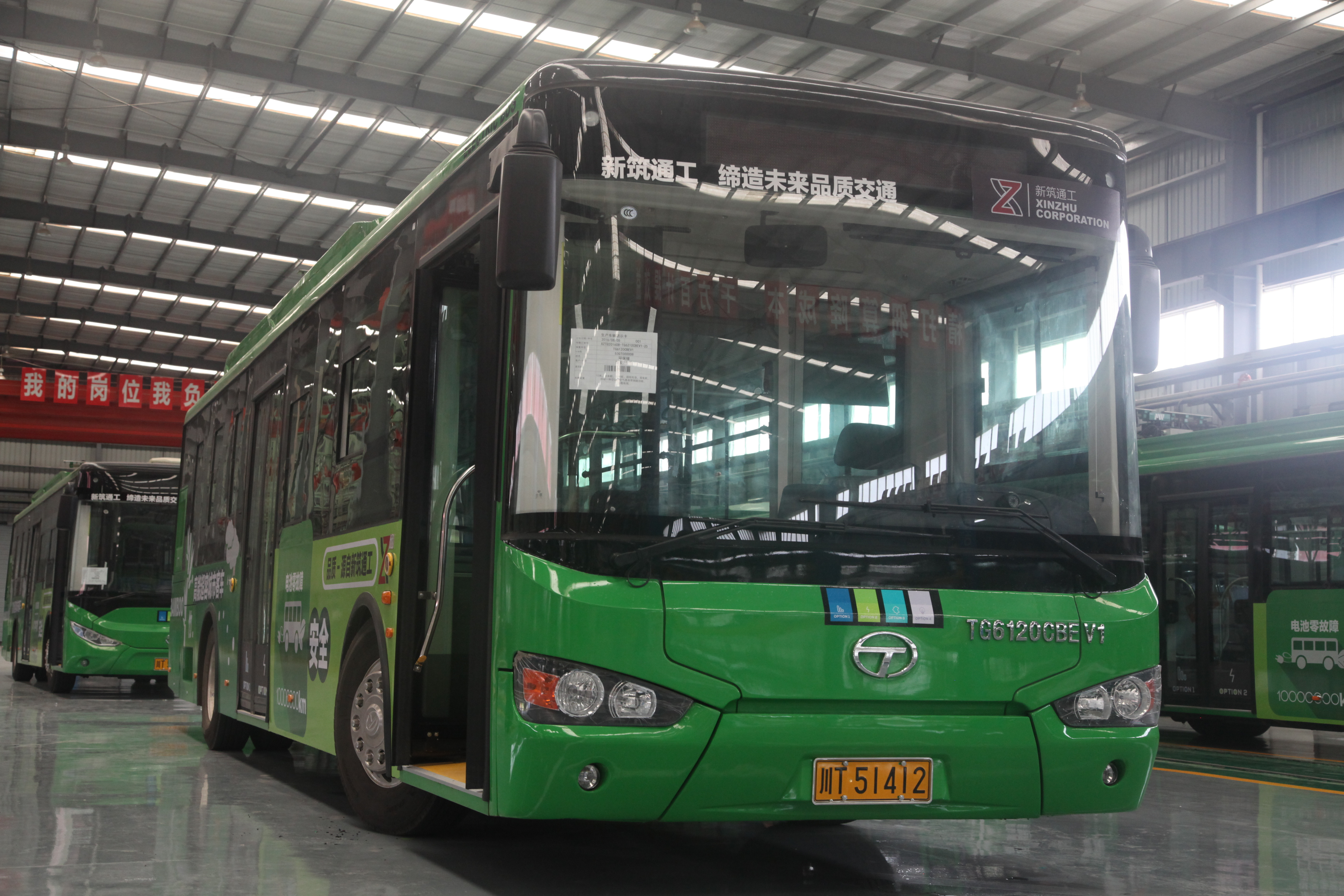 ? ? ? ?10月18日,中國西部第一條純電動在線快充公交示范線即將在雅安7號線開通!新筑通工自主研發制造的六輛已獲取正式“身份證”的純電動公交車已換上新裝,整裝待發!昨日,雅安蜀通公司領導、公交車駕駛員等一行走進新筑通工公司,見到了即將與大家見面的六輛純電動公交,車輛別具一格的外觀,舒適的內部構造,讓在場的駕駛員們愛不釋手!