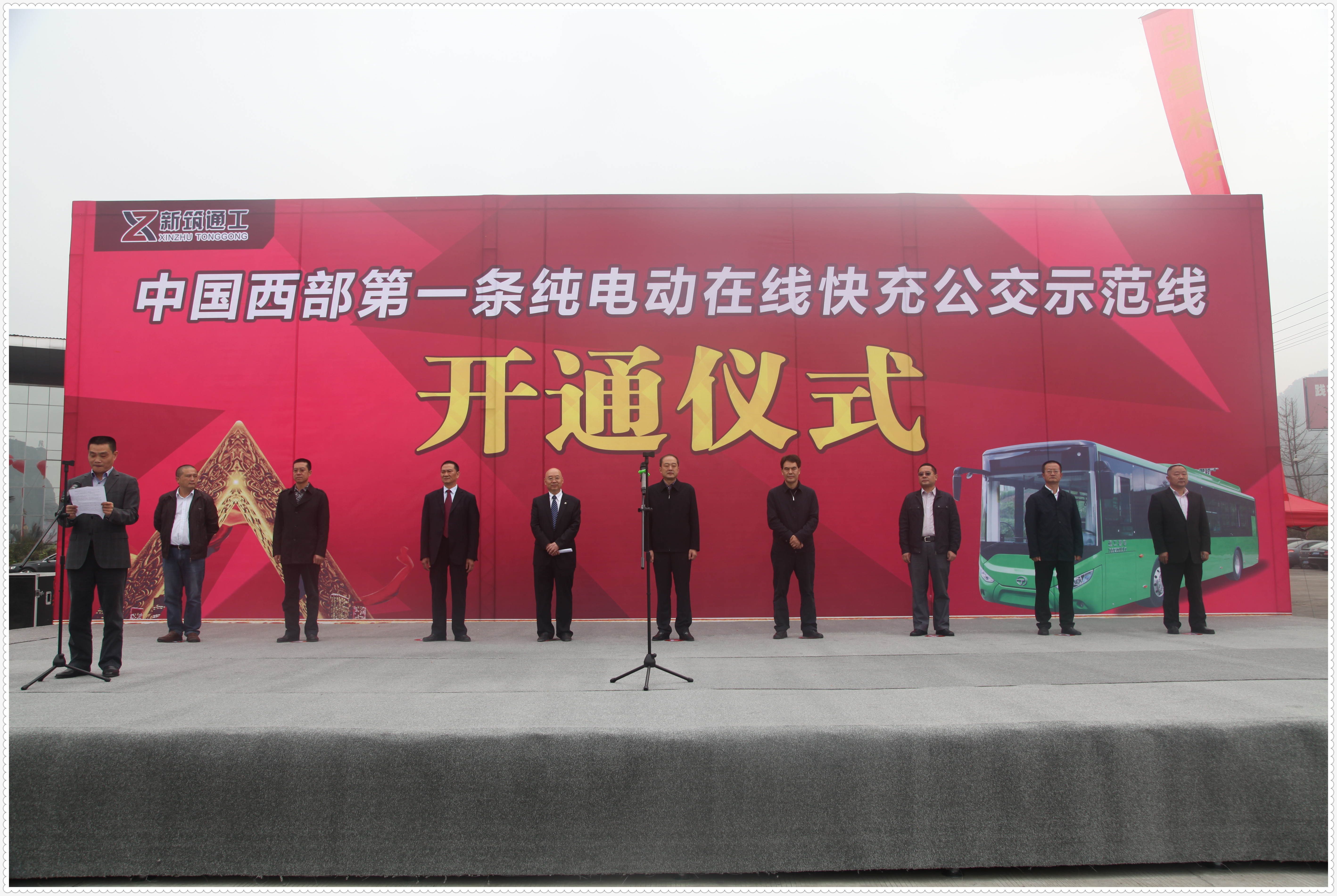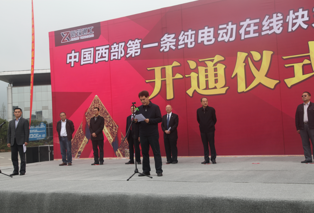 ? ? ? ?2016年10月18日上午10時,中國西部第一條純電動在線快充公交示范線開通儀式在雅安東站舉行,雅安市委副書記、市長蘭開馳,市政府副市長王冬林,公司總裁馮克敏、新筑通工董事長黃克明等領導出席了此次開通儀式。由新筑通工自主研發的首款超級電容城市客車首次開通運行將有6臺新車投入雅安公交7號線使用。