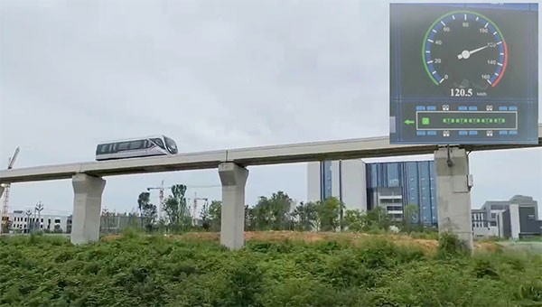 新筑股份的國產化磁浮車輛動態調試過程中,逐個克服了磁浮道岔區段、100‰坡道和60m半徑彎道疊加線路、多軌道梁型復合線路等復雜試驗線路環境的挑戰,在遠少于預期的調試時間內,實現了車輛120km/h速度穩定運行的動態調試目標。