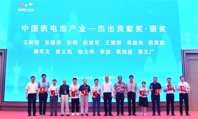 由國(guó)家釩鈦產(chǎn)業(yè)聯(lián)盟聯(lián)合四川發(fā)展興欣釩能源科技有限公司主辦,四川省釩鈦鋼鐵產(chǎn)業(yè)協(xié)會(huì)承辦的“2024釩電池天府論壇”于2024年5月24日—26日在成都舉行。國(guó)家釩鈦產(chǎn)業(yè)聯(lián)盟經(jīng)過(guò)業(yè)內(nèi)推薦、綜合評(píng)選和征求意見(jiàn),評(píng)選出了中國(guó)釩電池產(chǎn)業(yè)的領(lǐng)軍人物。川發(fā)興能總工程師蒲年文憑借對(duì)中國(guó)釩電池產(chǎn)業(yè)的杰出貢獻(xiàn),榮獲中國(guó)釩電池產(chǎn)業(yè)“杰出貢獻(xiàn)獎(jiǎng)·銀獎(jiǎng)”,并受邀擔(dān)任國(guó)家釩鈦產(chǎn)業(yè)聯(lián)盟釩電池專家委員會(huì)委員。