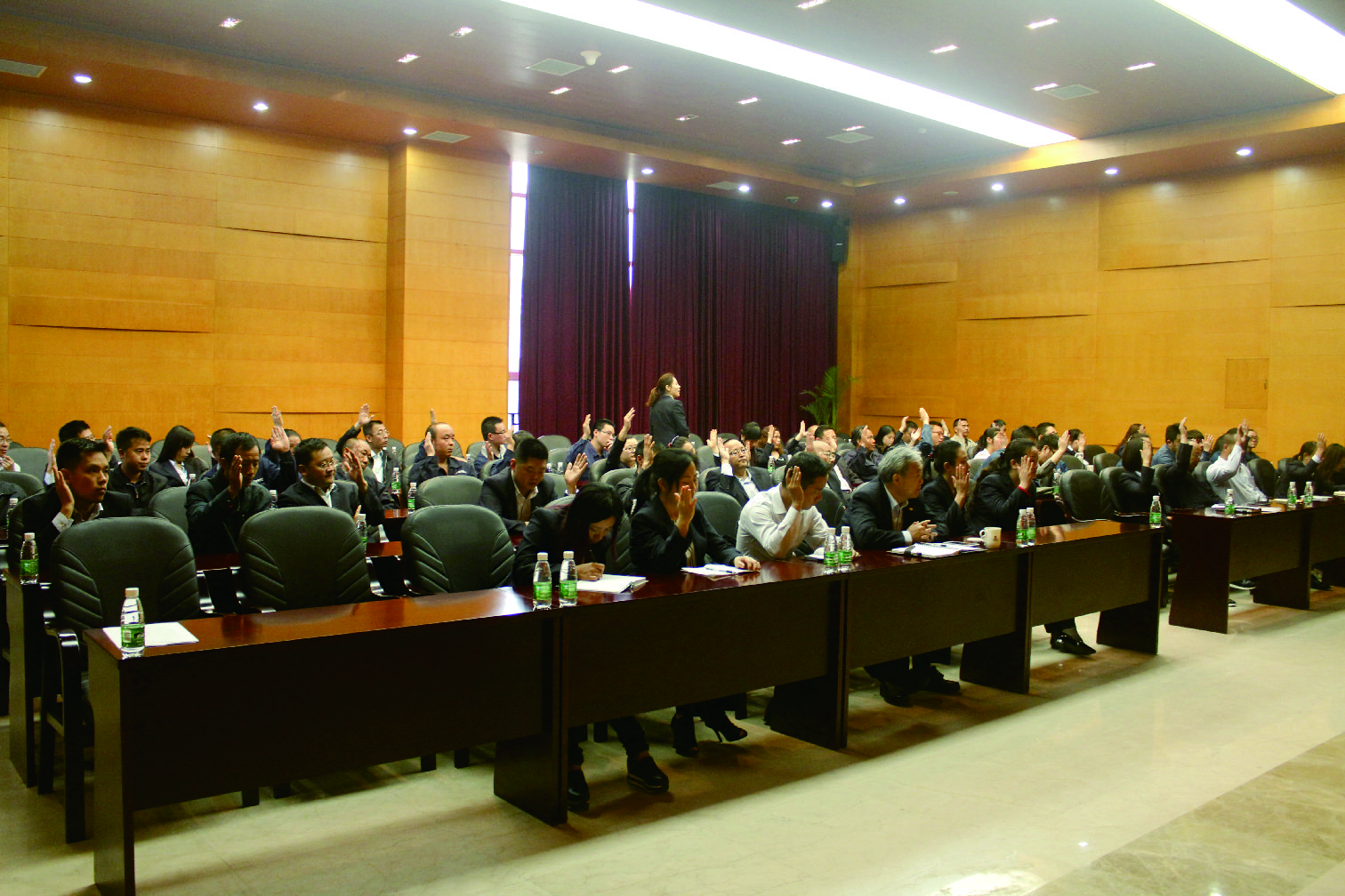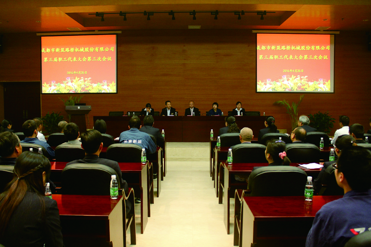 ? ? ? ?4月26日上午,新筑股份公司第三屆職工代表大會第三次會議在223會議室隆重召開,公司副總裁衡福明出席了大會。大會由公司工會主席張宏鷹主持。大會首先由運營管理部人力資源副總監宋長勝宣講了2016年公司《工資集體協議》草案、公司《勞動紀律管理制度(修訂)》草案、公司《工資支付管理辦法(修訂)》草案,經與會代表逐個認真審議后全票通過了以上制度(協議)草案。會上,公司工會副主席毛文玉同志做了員工互助基金工作報告,向職工代表通報了2015—2016年度員工互助基金收支情況;公司工會主席張宏鷹同志宣讀了《關于開展五·一慰問勞模的通知》,并現場慰問公司全體勞模;公司工會主席張宏鷹同志在會上總結了2015年度公司工會工作,并號召全體參會代表廣泛宣傳本次會議的內容和精神,按照公司要求提升專業素質,努力完成各自工作任務,確保公司年度經營管理目標的實現最后,公司副總裁衡福明先生做了重要講話,他首先向全體職工代表轉達了公司董事長的關懷,并向大家說明了企業的發展方向,希望全體職工代表在公司轉型升級過程中認真履職,做好本職工作,帶動廣大職工群眾為公司更好地發展再立新功。