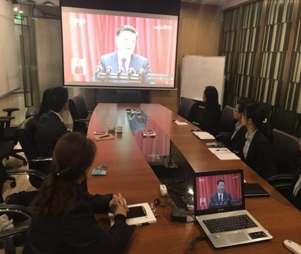 ? ? ? 10月18日上午9點,中國共產黨第十九次全國代表大會在北京隆重召開,習近平總書記代表第十八屆中央委員會向大會作報告。新筑股份公司位于成都、新津、雅安等地的黨支部,紛紛組織黨員同志們收看黨的十九大開幕盛況,認真聆聽習近平總書記所作的十九大報告。??